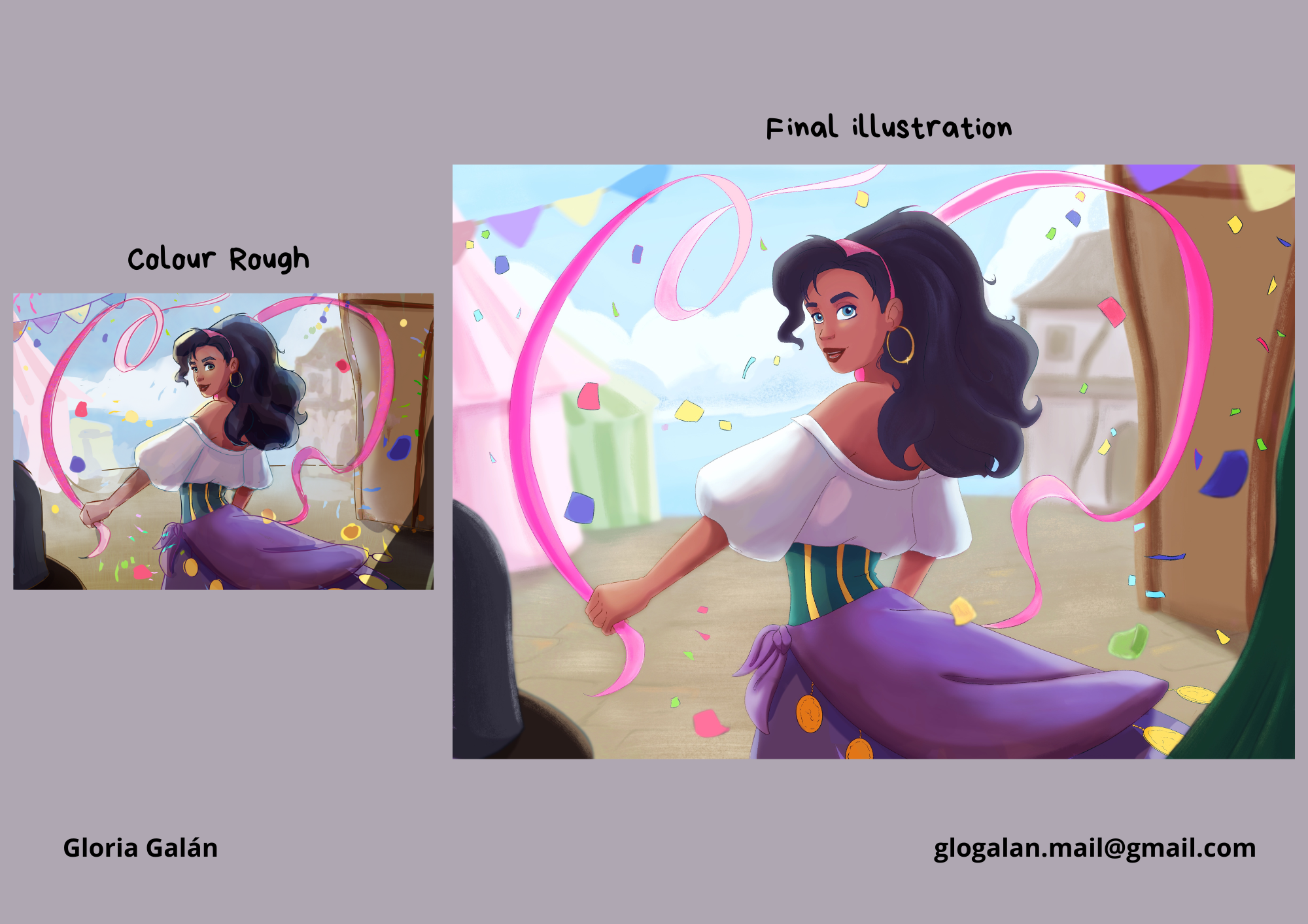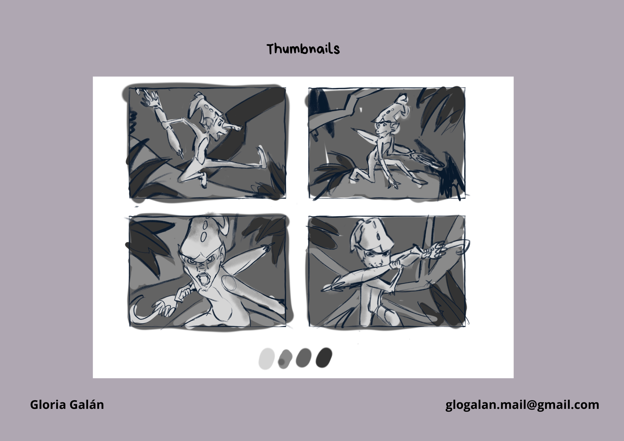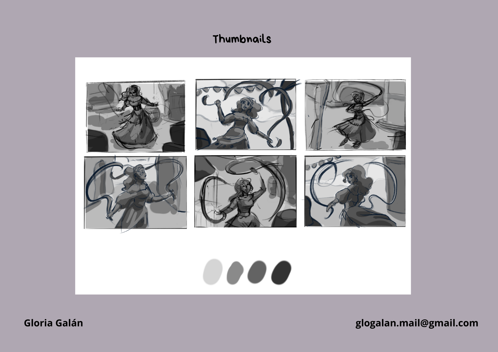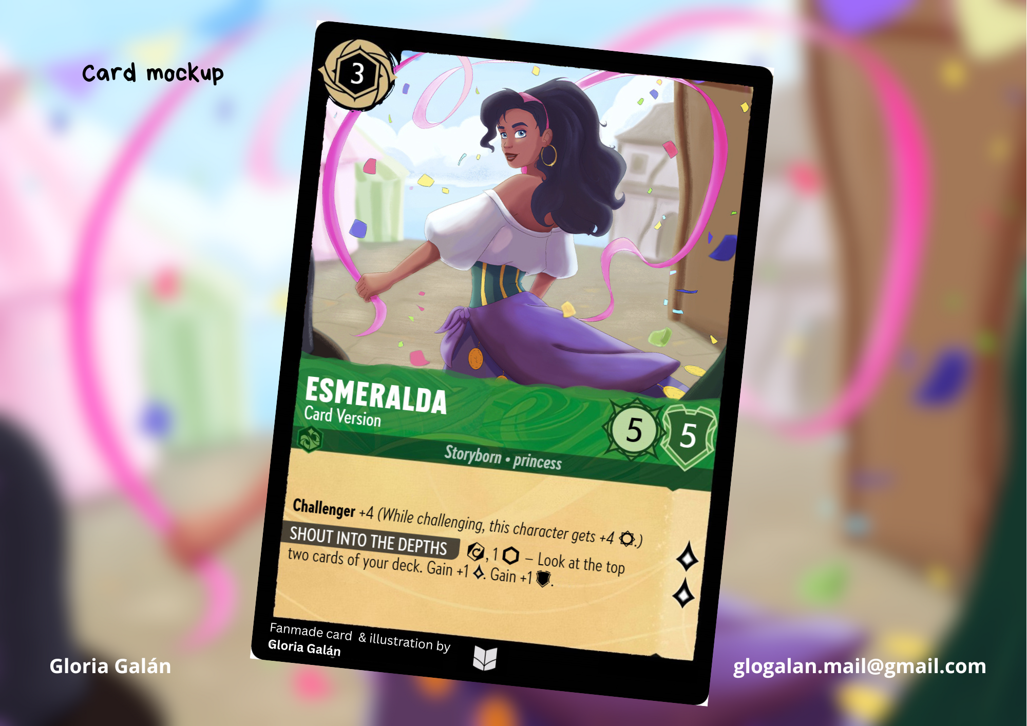 These are fan-made designs for Lorcana cards, featuring thumbnails and color studies that showcase the development process for each card. The narrative of each card is key, and the visual style was carefully adapted to match the color type, ensuring each piece fits within the broader magical world.